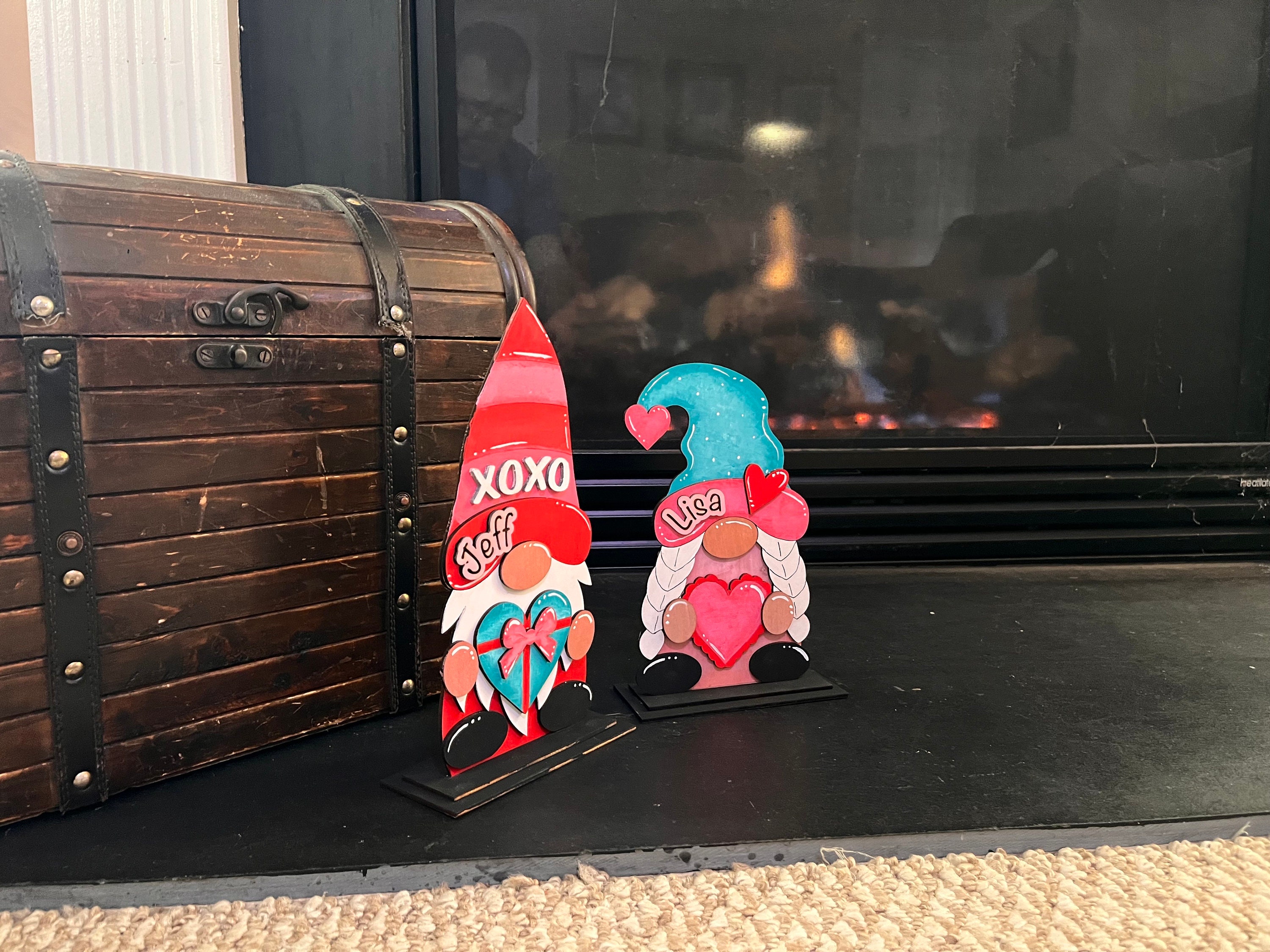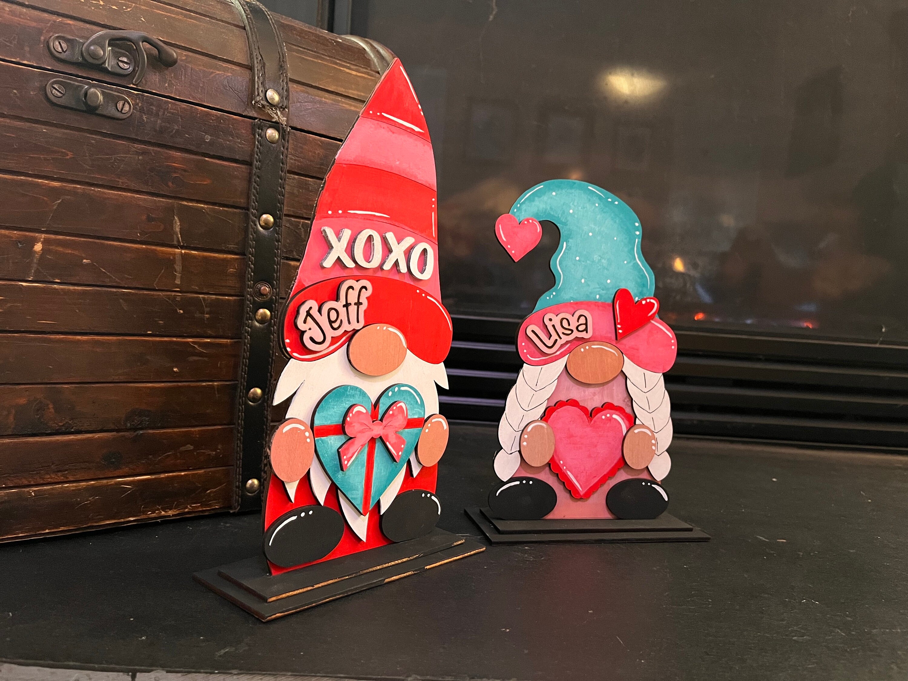 The hand-painted Red & Pink Valentine Gnome, with its intricate laser-cut design, is not just a decoration but a heartfelt gift idea. Its vibrant colors and personalized touch make it a unique expression of love. The attention to detail in both craftsmanship and customization adds a special charm, making it a thoughtful and memorable present for someone special on Valentine's Day.