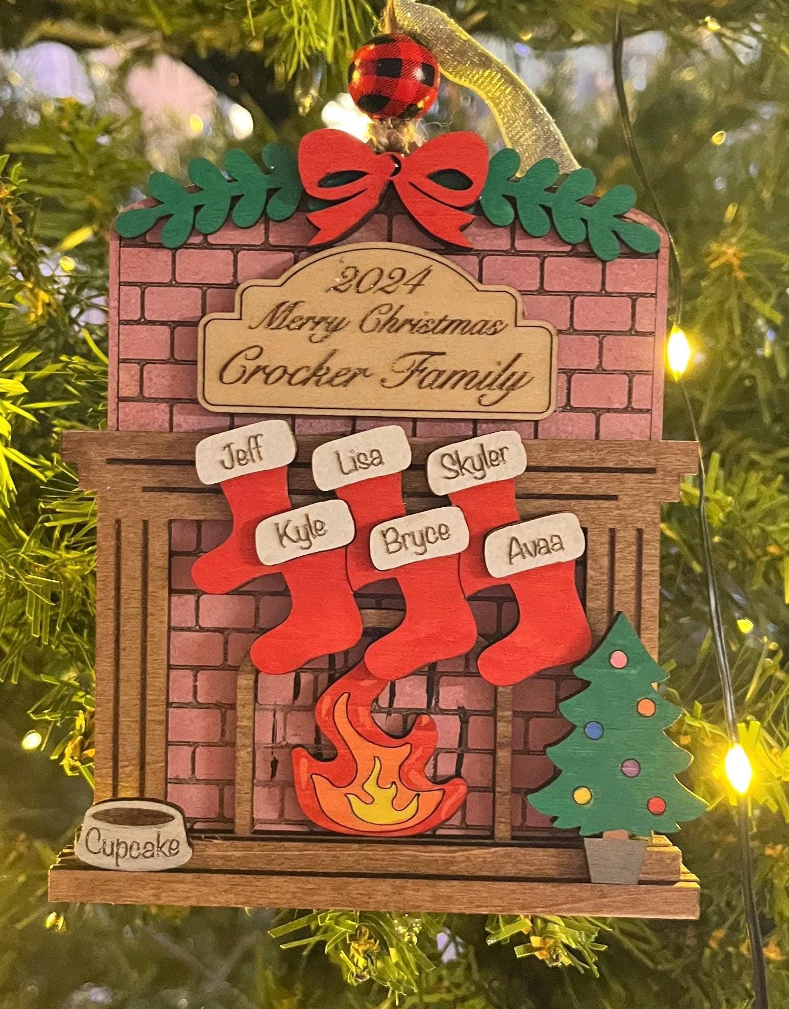 Christmas Family Stocking | Wooden Christmas Ornament | Personalized | Tree Decorations | Gift Ideas | Rustic Farmhouse | Cozy Fireplace