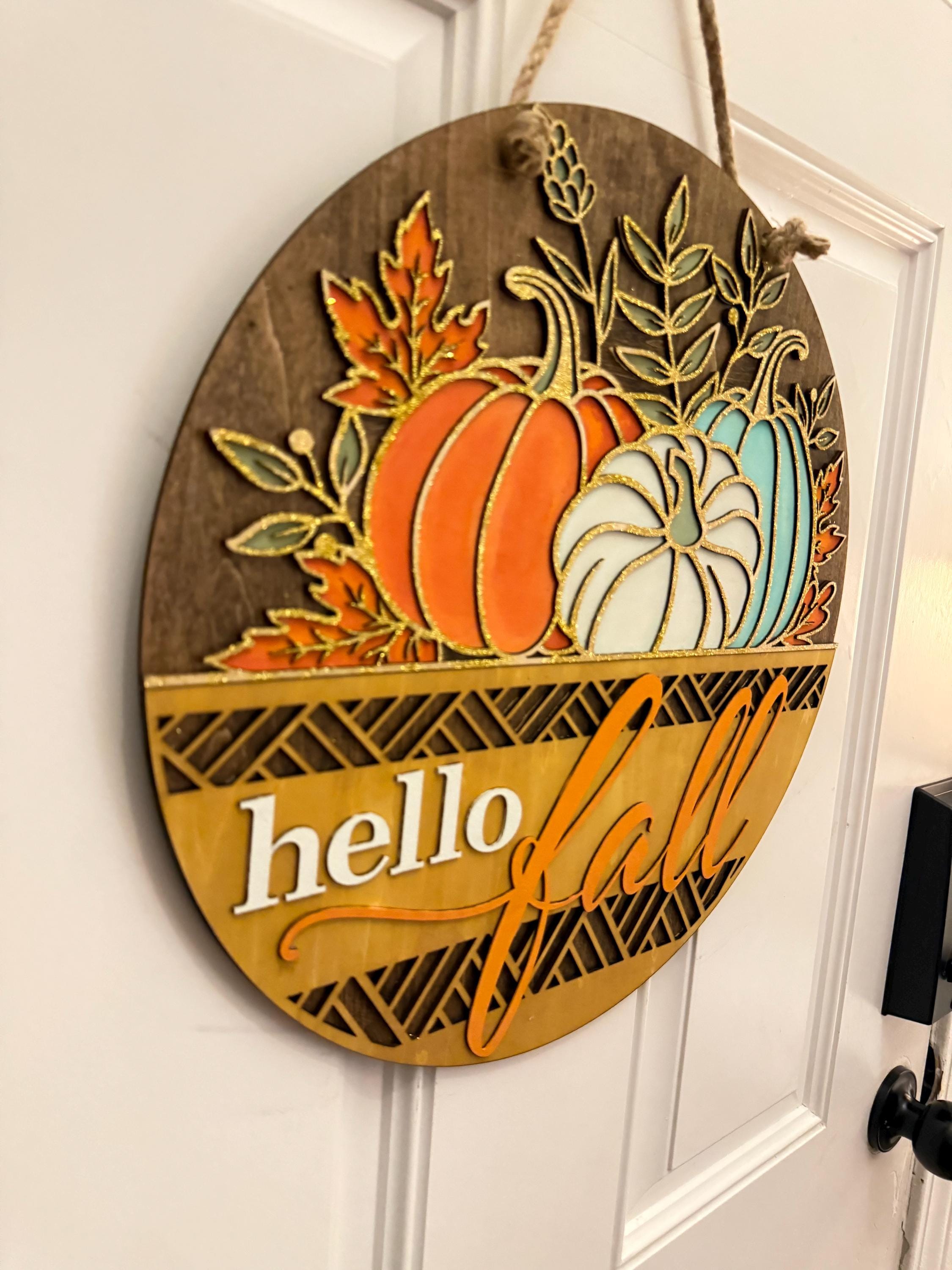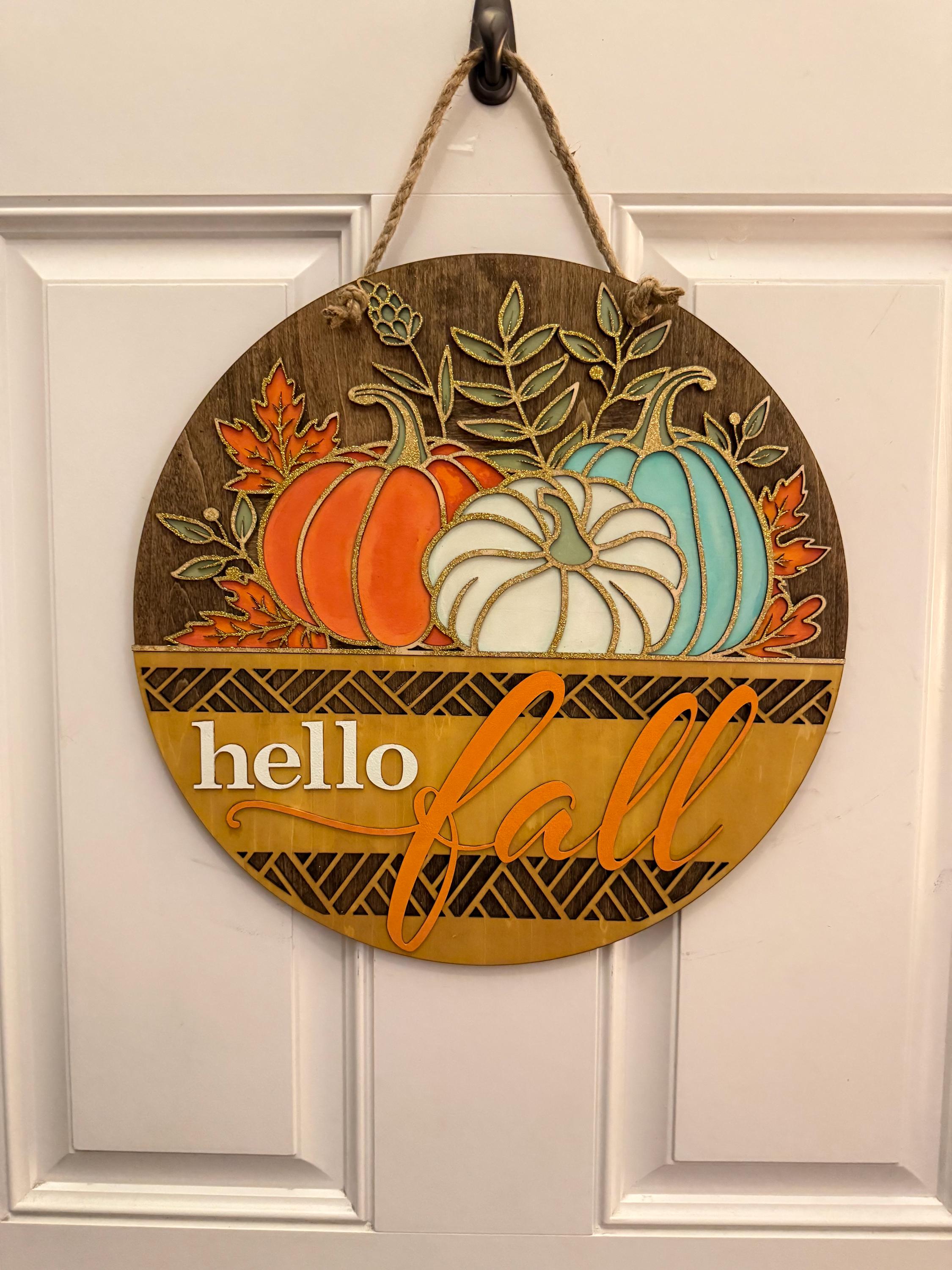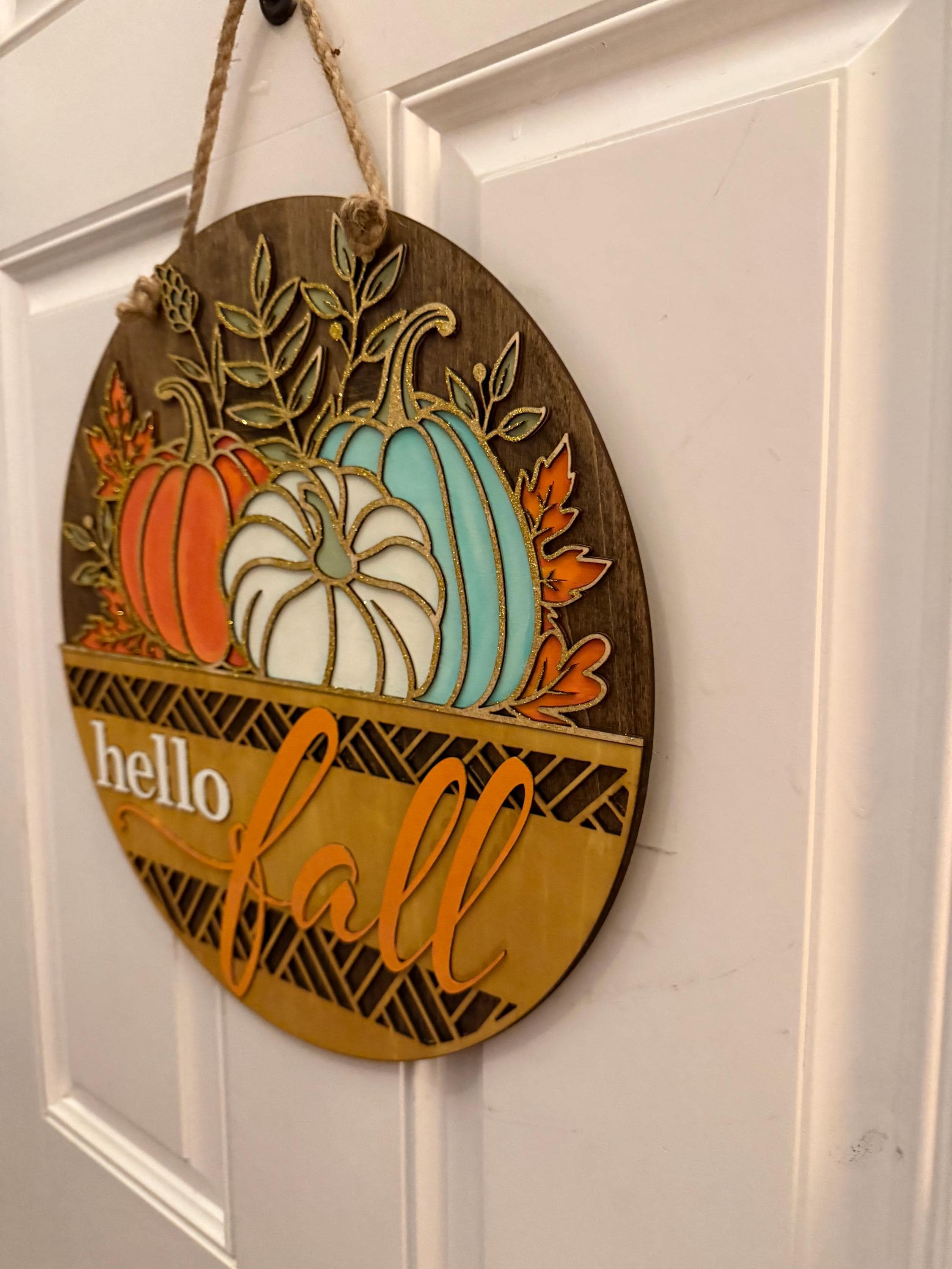 #FallDecor #PumpkinDoorHanger #HelloFallSign #AutumnWelcomeSign #RusticFallDecor #FarmhouseStyle #ThanksgivingDecor #HandmadeWithLove