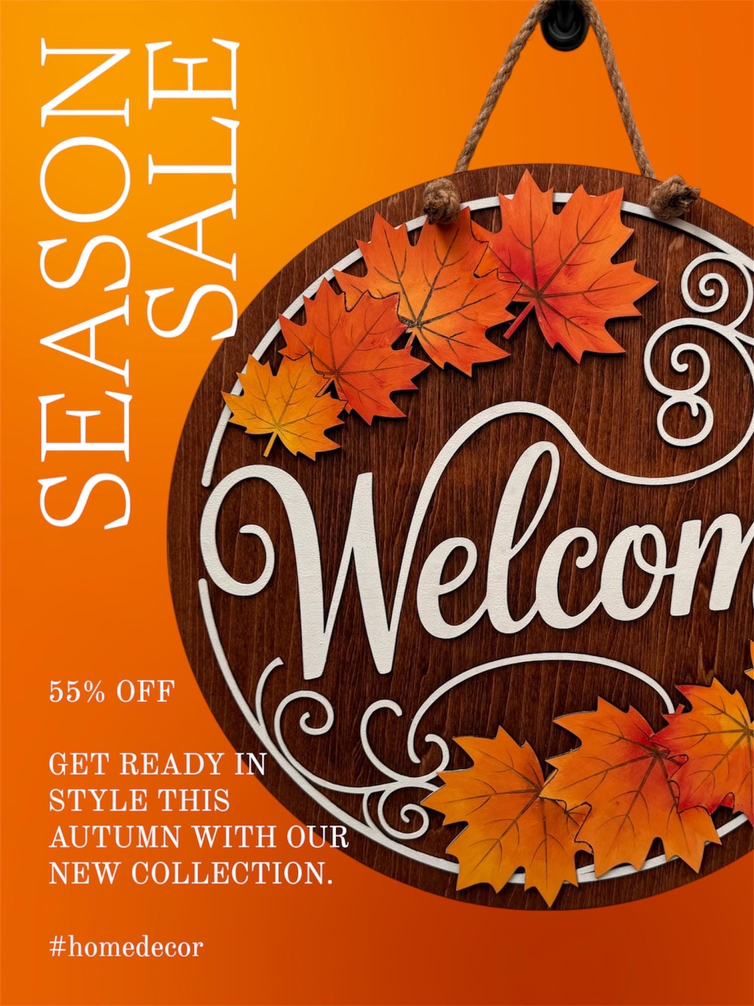๐ Add rustic charm to your home this season with this eye-catching autumn welcome sign. Order now and make your entryway unforgettable!