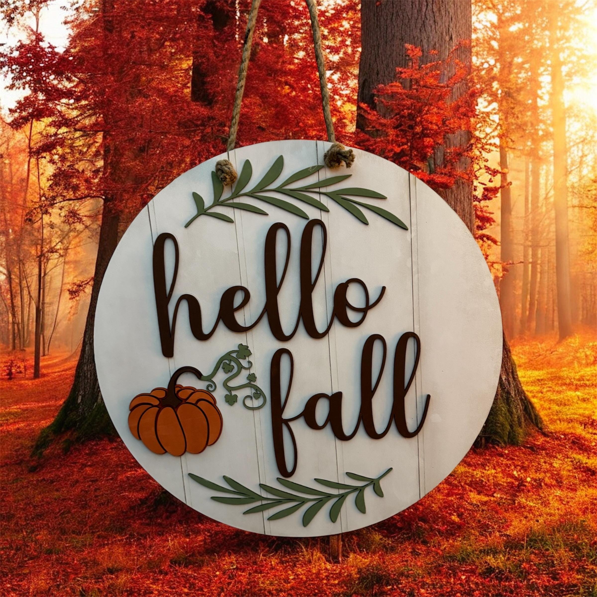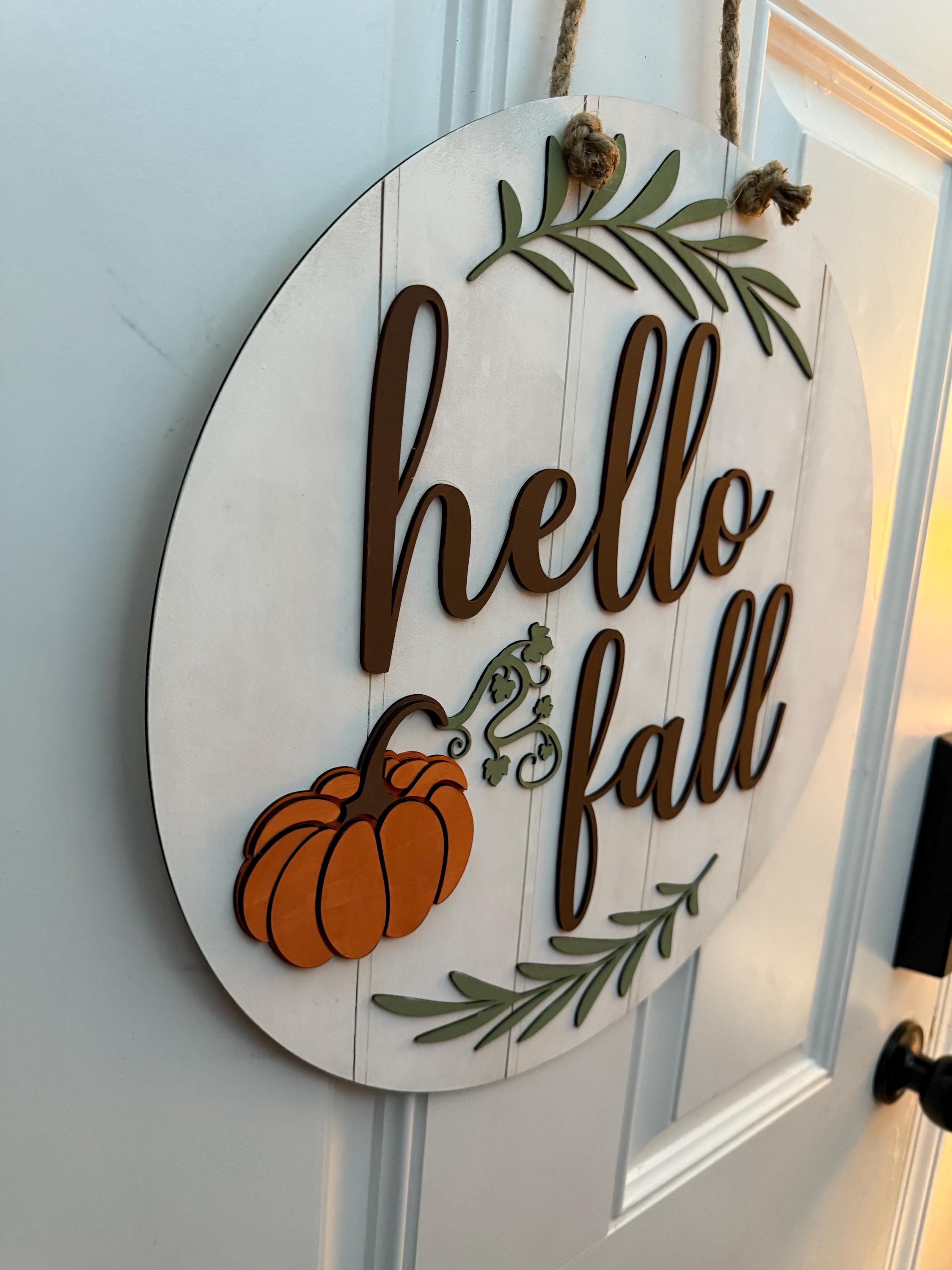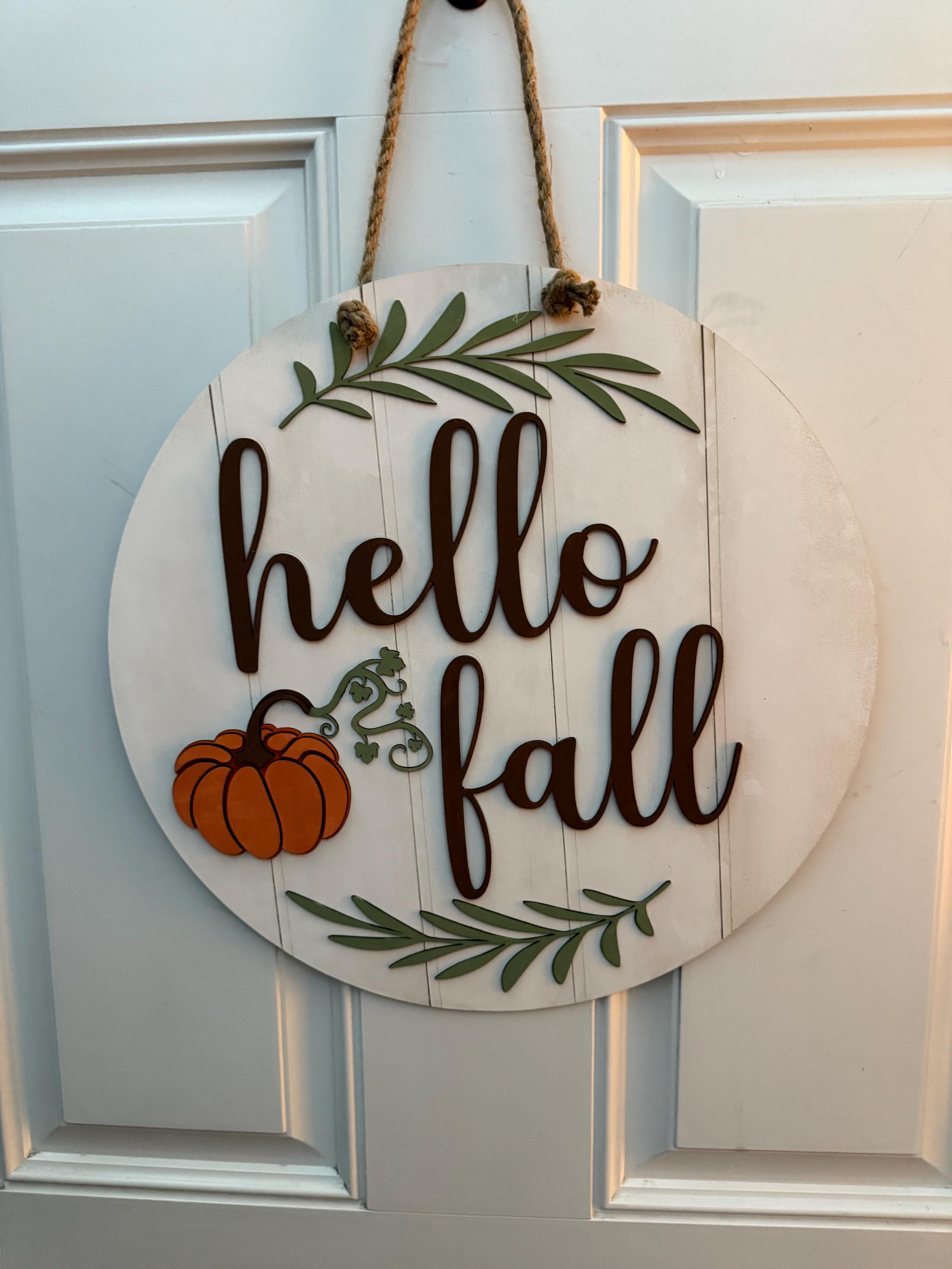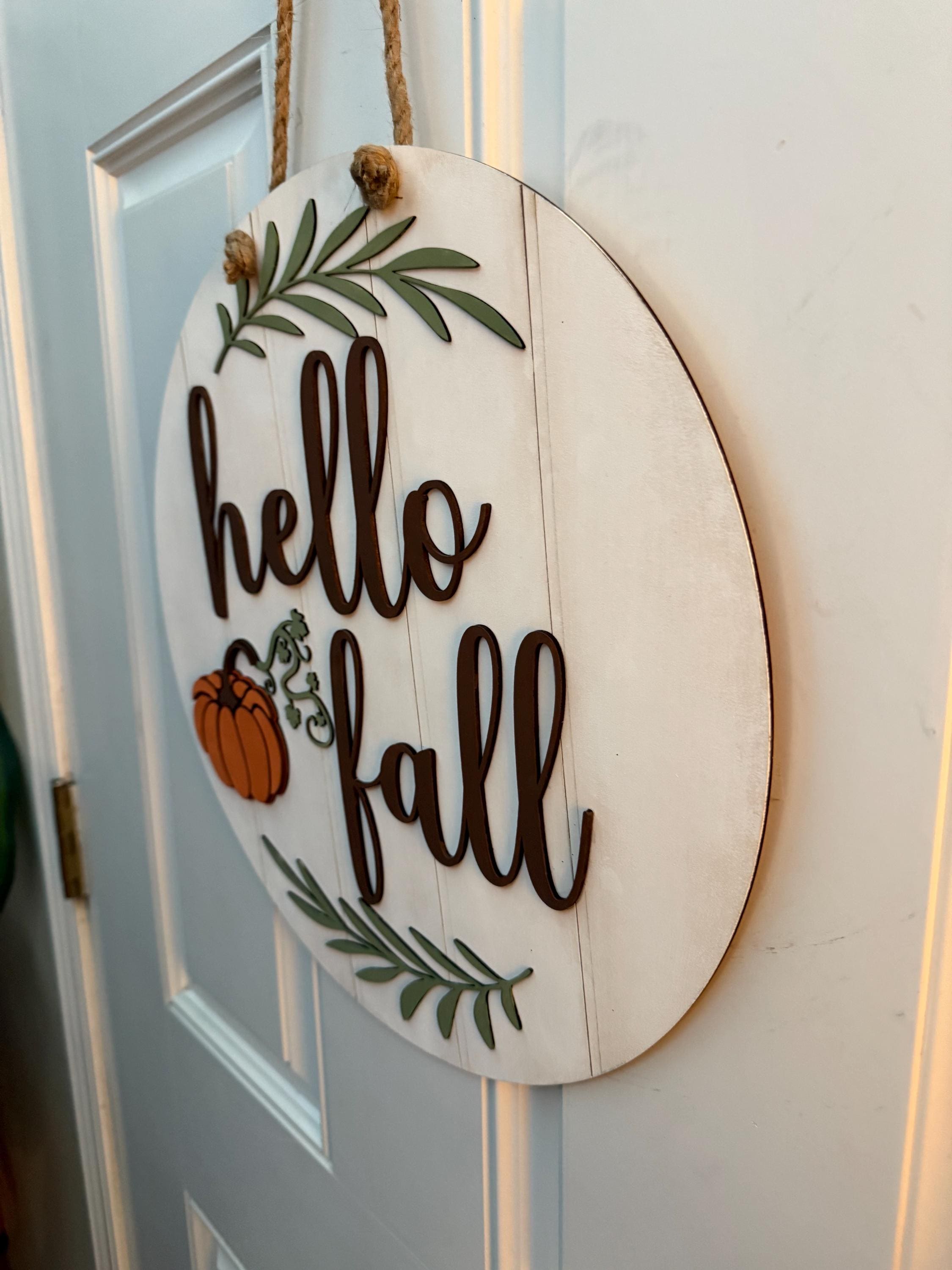 Welcome the cozy season in style with this handmade “Hello Fall” wooden door hanger! This round farmhouse-inspired sign is the perfect way to greet your guests and bring a touch of autumn charm to your home.