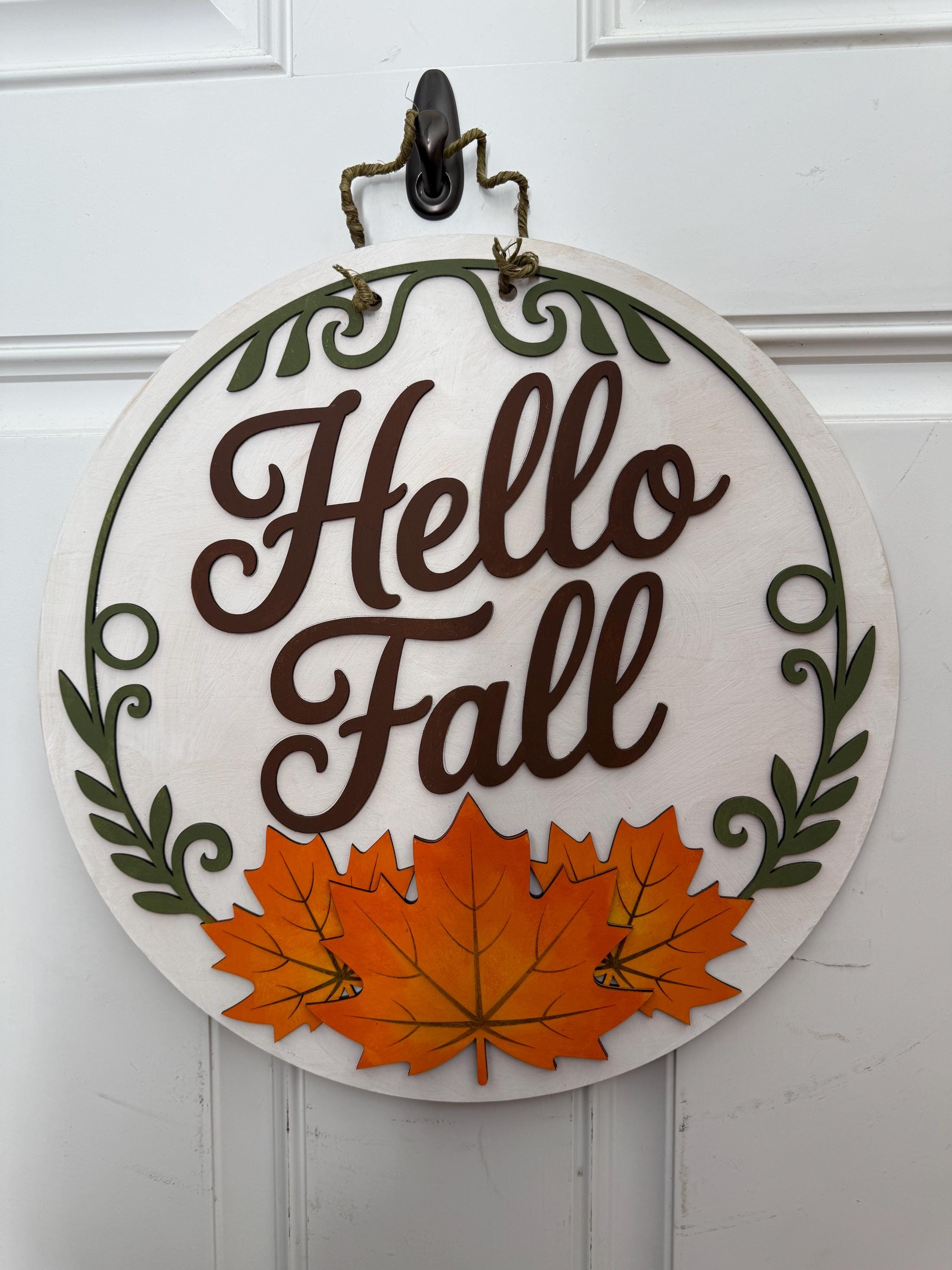 Bring cozy autumn vibes straight to your doorstep with this handmade βHello Fallβ wooden door hanger. Crafted with care, this round seasonal sign is the perfect way to greet guests and celebrate the beauty of fall.